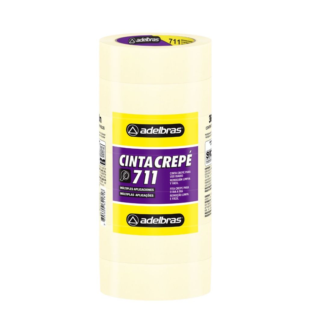 Cinta Crepe 711, composición de papel saturado color crema, cubierto con adhesivo a base de caucho natural y resina. Una cinta robusta que ofrece excelentes prestaciones en pintura de casas, trabajos escolares, fijación, protección, embalaje, manualidades, decoración, bricolaje, etc. Resistente a temperaturas de hasta 60 , no deja residuos si se retira dentro de las 24 horas posteriores a la aplicación.